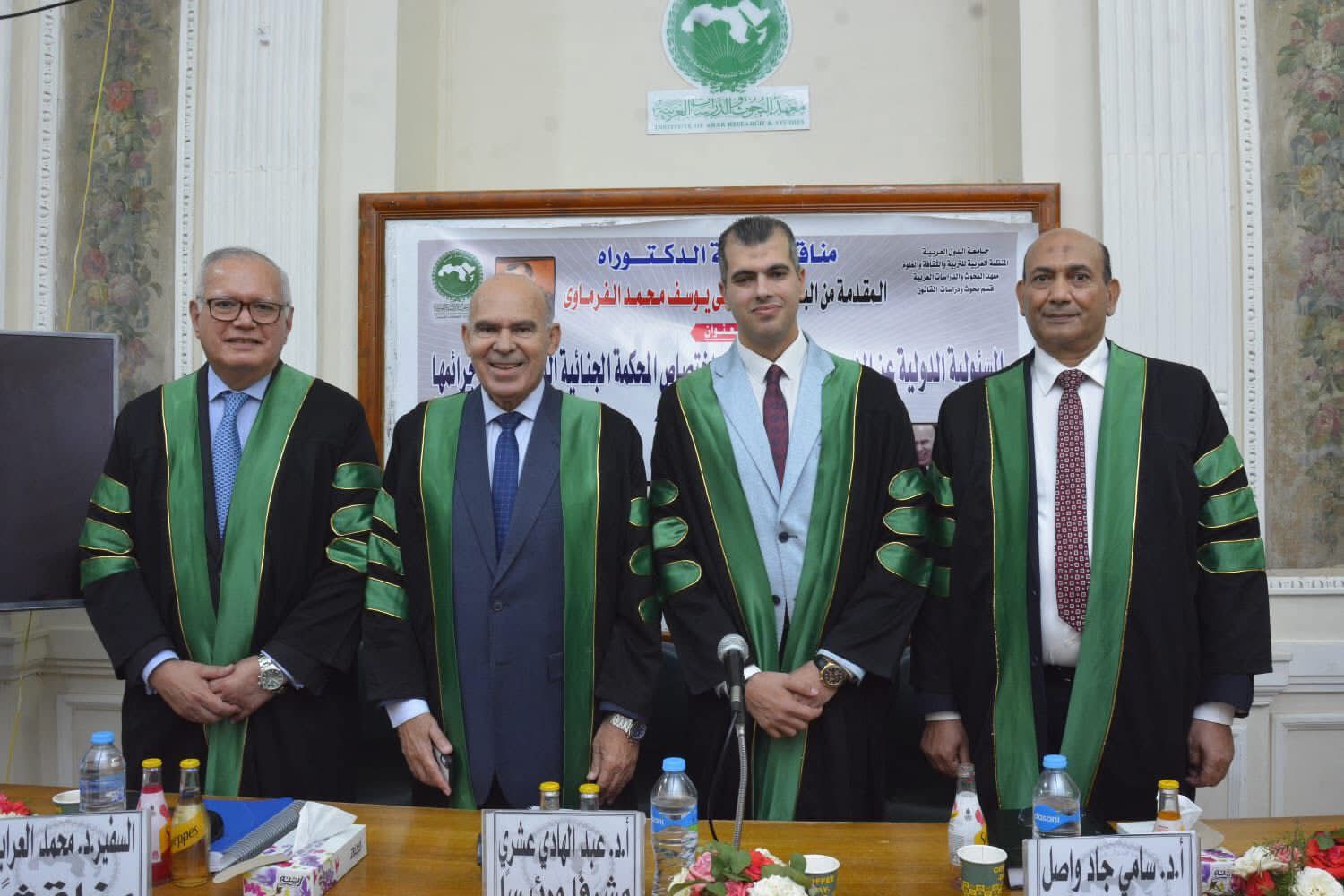 وقد تألفت لجنة الإشراف والمناقشة من نخبة من الأساتذة والخبراء المرموقين، حيث ترأس الإشراف الأستاذ الدكتور عبدالهادي العشري، أستاذ ورئيس قسم القانون الدولي بكلية الحقوق – جامعة مدينة السادات، فيما ضمت اللجنة كلاً من السفير محمد عبدالحى العرابي، وزير الخارجية المصري الأسبق، مناقشاً، والأستاذ الدكتور سامي جاد واصل، وكيل كلية القانون بالجامعة البريطانية وأستاذ القانون الدولي العام بأكاديمية الشرطة.