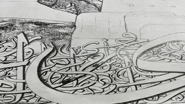 فنياً، لم يكتفِ المحارب بالنقش السطحي. لقد "شرّح" الحجر، وغاص في طبقاته، مستخدمًا 13 مستوى مختلفًا من العمق والإزاحة. هذه التقنية المعقدة هي التي تمنح الجدارية أبعادًا شبه ثلاثية، تخلق تكوينًا بصريًا متدرجًا ينقل عين الناظر من السطح الخارجي إلى قلب التاريخ في الداخل، ليتحول الجدار من حاجزٍ إلى بوابة.