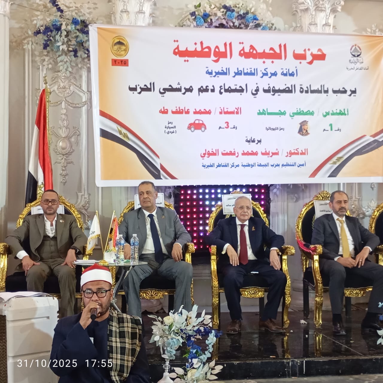شهد اللقاء حضور المهندس مصطفى مجاهد، أمين حزب الجبهة بمحافظة القليوبية ومرشح القائمة الوطنية لمجلس النواب، الذي أعرب عن تقديره لجهود أمانة الحزب في مراكز قليوب والمركز والمدينة والقناطر في تنظيم اللقاء، مشيرًا إلى أن عمل أمانات المحافظة يمثل قاطرة النجاح خلال المرحلة المقبلة. كما وجّه التحية للدكتور عاصم الجزار، رئيس الحزب، وللسيد القصير الأمين العام، ولأمين التنظيم أحمد رسلان، مؤكدًا دعمه الكامل للقيادة السياسية برئاسة الرئيس عبد الفتاح السيسي في مسيرة التنمية ومواجهة التحديات الوطنية.