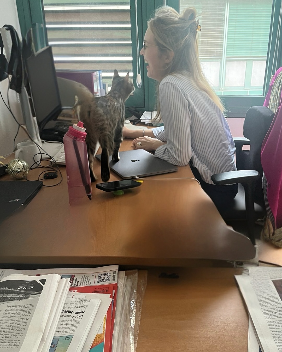 وقالت السفارة الألمانية بالقاهرة "صباح عادي تمامًا في السفارة الألمانية في القاهرة… إلى أن قررت قطة مصرية صغيرة أن تزورنا وتدخل معنا إلى المكتب!".