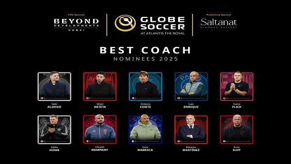 وتشمل الجوائز فئات أخرى، أبرزها أفضل مدرب، حيث يتنافس لويس إنريكي، ميكيل أرتيتا، هانز فليك، أنطونيو كونتي، إيدي هاو، تشابي ألونسو، روبرتو مارتينيز، آرني سلوت، إنزو ماريسكا، وفينسنت كومباني.