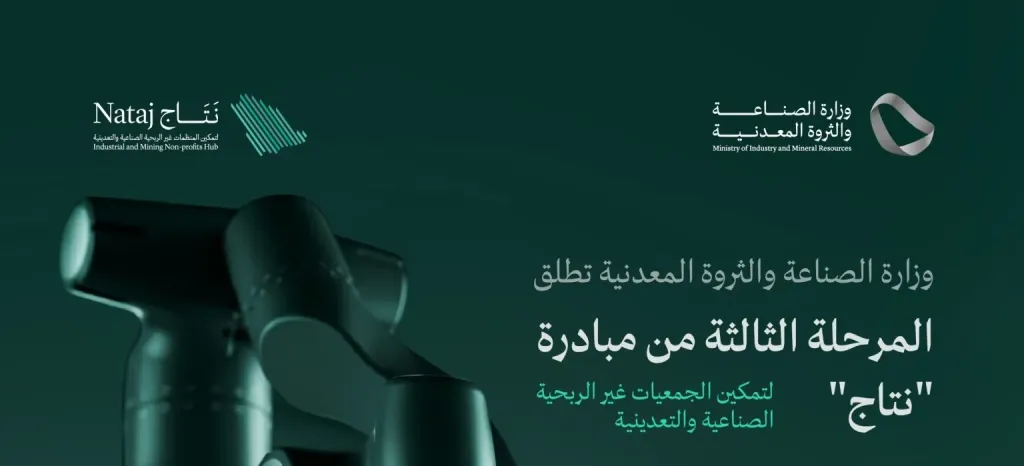 أطلقت وزارة الصناعة والثروة المعدنية المرحلة الثالثة من مبادرة "نتاج"، والمتمثلة في “مسرّعة نتاج”، التي تستهدف تمكين الجمعيات غير الربحية الصناعية والتعدينية، وتسهيل رحلتها نحو الاستقلالية والاستدامة التشغيلية، ضمن جهود الوزارة لدعم المنظمات غير الربحية في قطاعي الصناعة والتعدين.