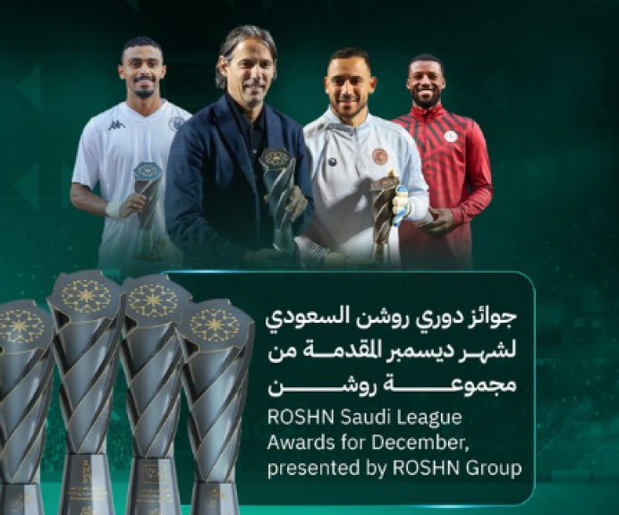 أعلنت شركة روشن للعقارات، التابعة لـ "صندوق الاستثمارات العامة، تهنئتها للفائزين بجوائز مجموعة روشن الشهرية في دوري روشن السعودي عن شهر ديسمبر 2025، والتي شملت جوائز: أفضل لاعب التي فاز بها الهولندي جورجينيو فينالدوم، قائد فريق الاتفاق ، وأفضل لاعب واعد عبدالعزيز العليوة، لاعب الخلود، وأفضل حارس مرمى رازيلي كيوين، حارس مرمى ضمك، وأفضل مدرب الإيطالى سيمونى إنزاجى المدير الفنى لفريق الهلال ، تقديرًا للأداء المتميز والجهود الفنية التي انعكست إيجابًا على مستوى المنافسات.