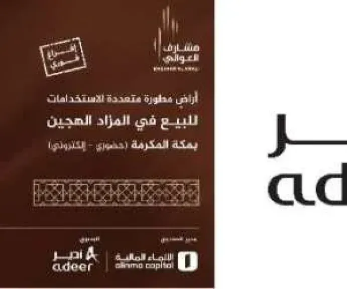 طرحت شركة 'أدير العقارية' مخطط 'مشارف العوالي' النموذجي للبيع عبر مزاد علني هجين، يُقام حضوريًا في قاعة مكة الكبرى بحي النسيم يوم 14 يناير 2026م عند الساعة 4:30 مساءً، وإلكترونيًا عبر منصة سومتك للمزادات، ليقدّم فرصًا استثمارية متميزة في قلب العاصمة المقدسة.